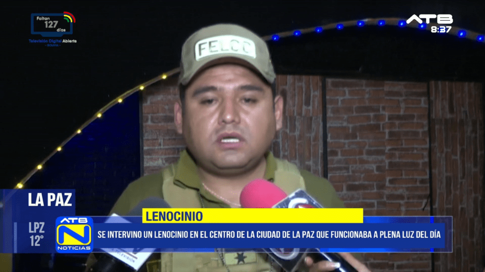 La Paz, 23 de ene 2026 (ATB Digital).- La Fuerza Especial de Lucha Contra el Crimen (FELCC) intervino un lenocinio en la zona de Miraflores, en La Paz. Según el reporte oficial, el establecimiento operaba de forma clandestina, permitiendo el ingreso solo mediante códigos. El propietario será procesado por el delito de proxenetismo.