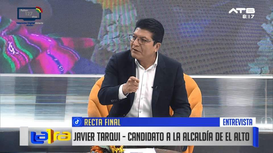 La Paz, 23 de ene 2026 (ATB Digital).- El candidato a la Alcaldía de El Alto por APB-Súmate, Javier Tarqui, dio a conocer sus principales propuestas para transformar la urbe alteña. Señaló que su plan apunta a descentralizar los trámites municipales, reducir el trameaje, fortalecer la seguridad ciudadana y mejorar los sistemas de salud y educación.
