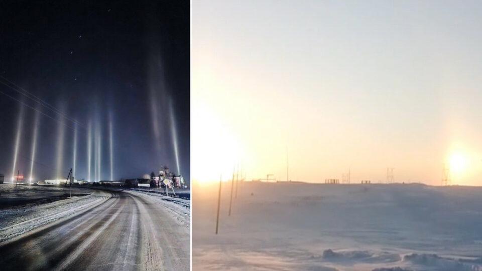 2 soles y ‘pilares de luz’ en el cielo: inusuales fenómenos ópticos sorprenden en Rusia