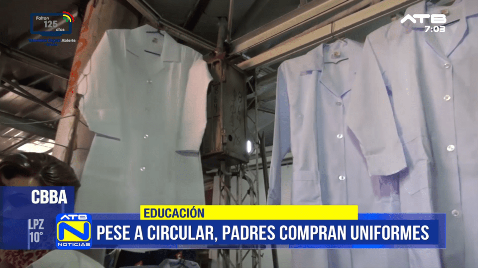 Cochabamba, 25 de ene 2026 (ATB Digital).- Comerciantes de uniformes escolares en la zona de la Cancha, en Cochabamba, señalaron que las ventas se incrementaron pese al comunicado del Ministerio de Educación que indica que no se puede obligar al uso ni a la compra de uniformes en lugares específicos.