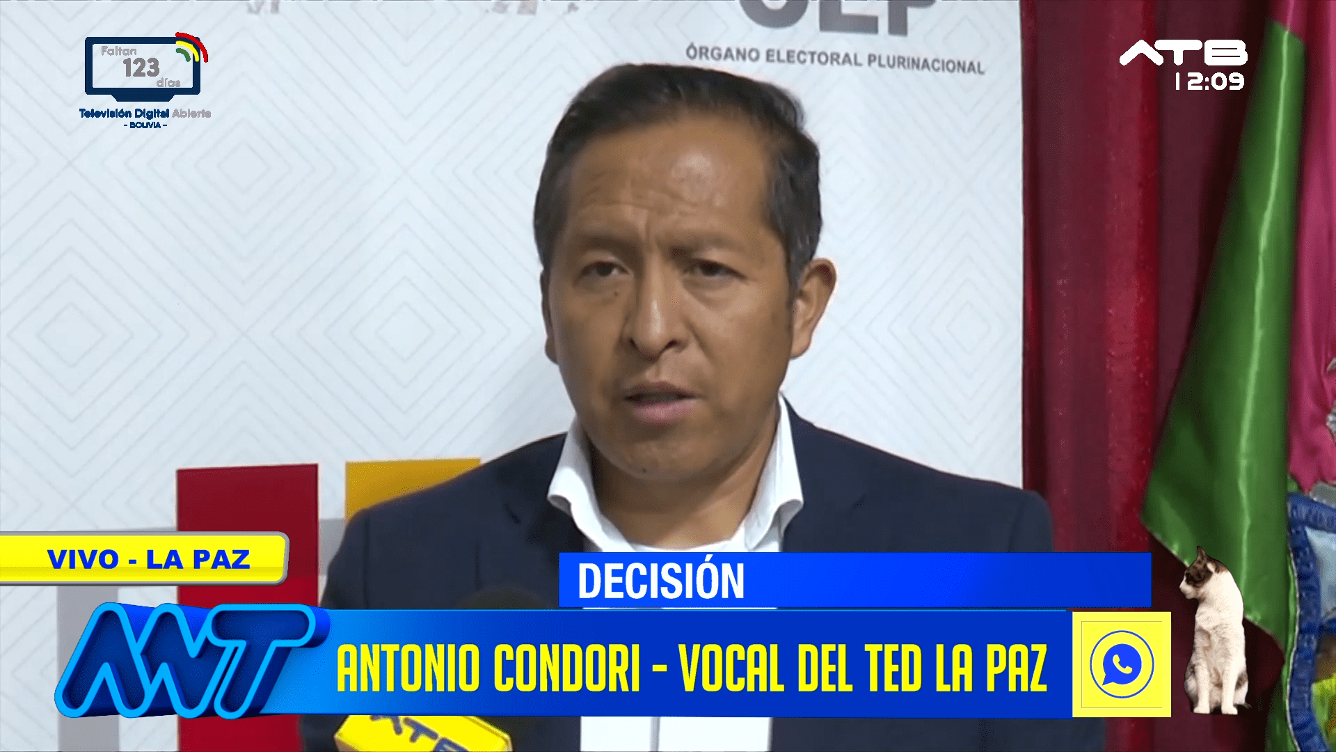 La Paz, 27 de ene 2026 (ATB Digital).- El vocal del Tribunal Departamental Electoral de La Paz, Antonio Condori, señaló que Unidad Cívica Solidaridad (UCS) ya no puede participar en las elecciones subnacionales, debido a la pérdida de su personería jurídica.