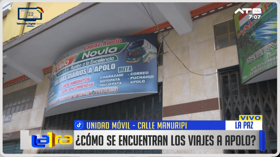 Según el reporte, sale un bus por día con destino a Apolo. En condiciones normales, cuando no se registran lluvias ni inconvenientes en la ruta, el viaje dura entre 10 y 12 horas; sin embargo, cuando el camino se llena de barro, el trayecto puede extenderse entre 15 y 18 horas.
