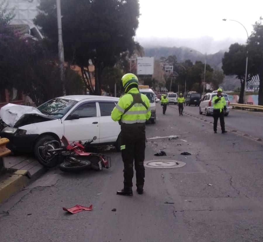 El secretario municipal de Movilidad y Seguridad Ciudadana, Erik Millares, informó que “el reporte indica que un motociclista y su acompañante, una dama, se dirigían hacia la zona Sur para el tema de regulación del tráfico cuando un taxista invadió su carril y los embistió. Ambos presentan fracturas y actualmente están siendo atendidos en el Hospital Metodista”.
