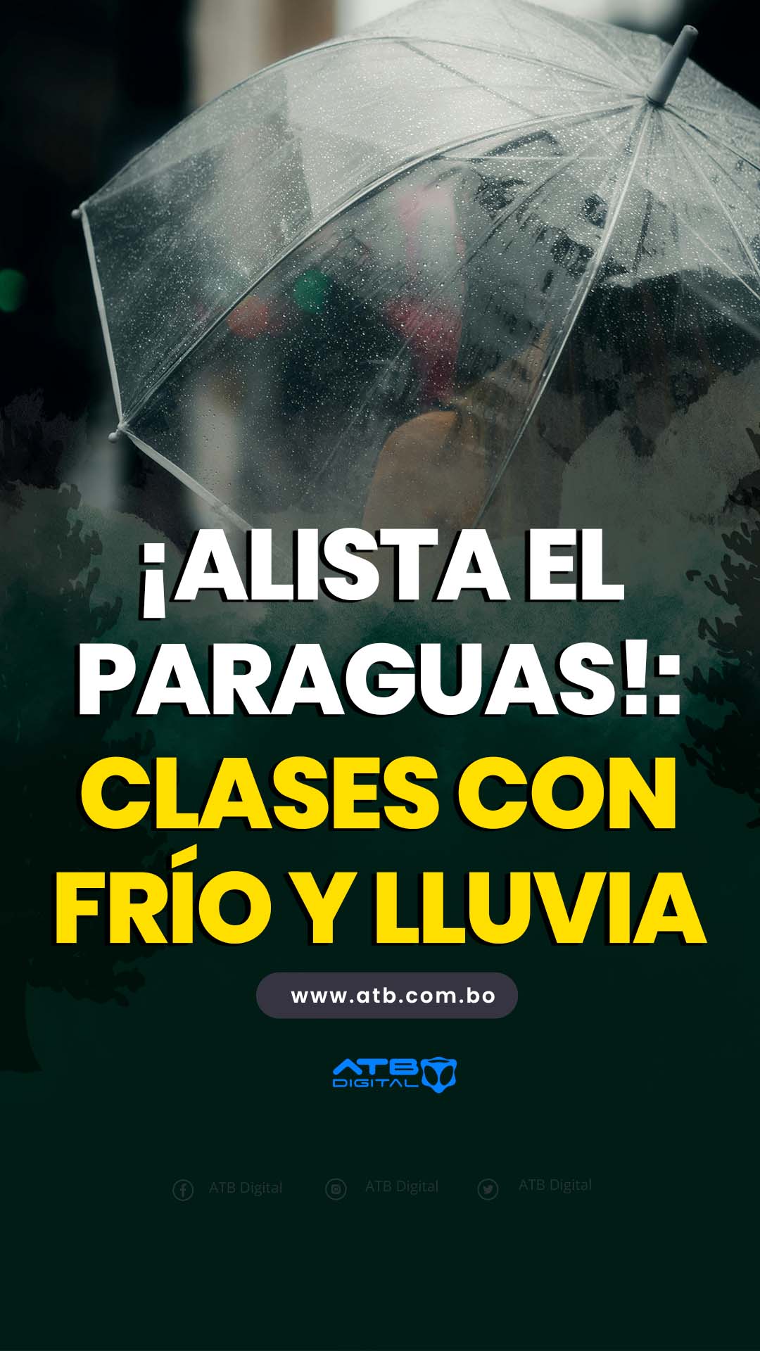 La Paz, 29 de ene 2026 (ATB Digital).- El retorno a clases este lunes 2 de febrero estará acompañado por bajas temperaturas y lluvias en varias regiones del país, según el Servicio Nacional de Meteorología e Hidrología (Senamhi), que recomendó a estudiantes y padres de familia alistarse con ropa abrigadora y paraguas ante el panorama climático adverso.