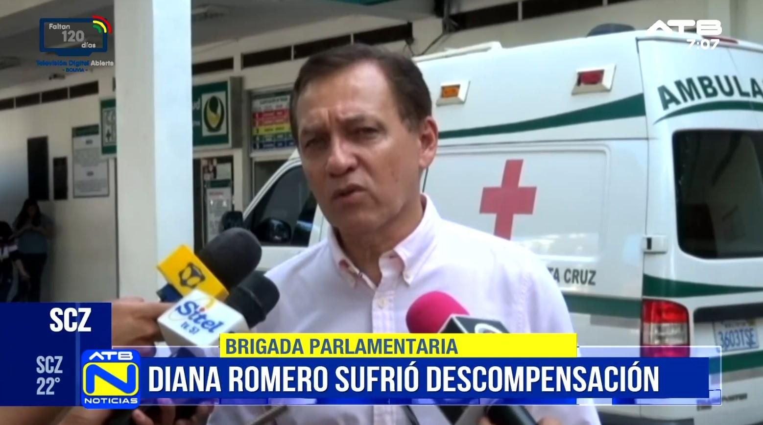 Santa Cruz, 30 de ene 2026 (ATB Digital).- Durante la jornada de este viernes, la diputada Diana Romero, esposa del vicepresidente Edmand Lara, fue evacuada de las oficinas de la Brigada Parlamentaria de Santa Cruz tras sufrir una descompensación en su salud.