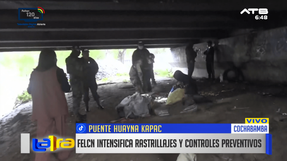 Cochabamba, 30 de ene 2026 (ATB Digital).- La Fuerza Especial de Lucha Contra el Narcotráfico (FELCN) intensificó los rastrillajes y controles preventivos en distintos puntos de la ciudad, con el objetivo de garantizar la seguridad, especialmente ante el regreso a clases. En un operativo realizado debajo del puente Huayna Kápac, se encontró variedad de droga, encendedores, pipas y otros objetos, además de tres personas que presuntamente serían consumidoras. La FELCN informó que estos controles continuarán en varios sectores de la ciudad.