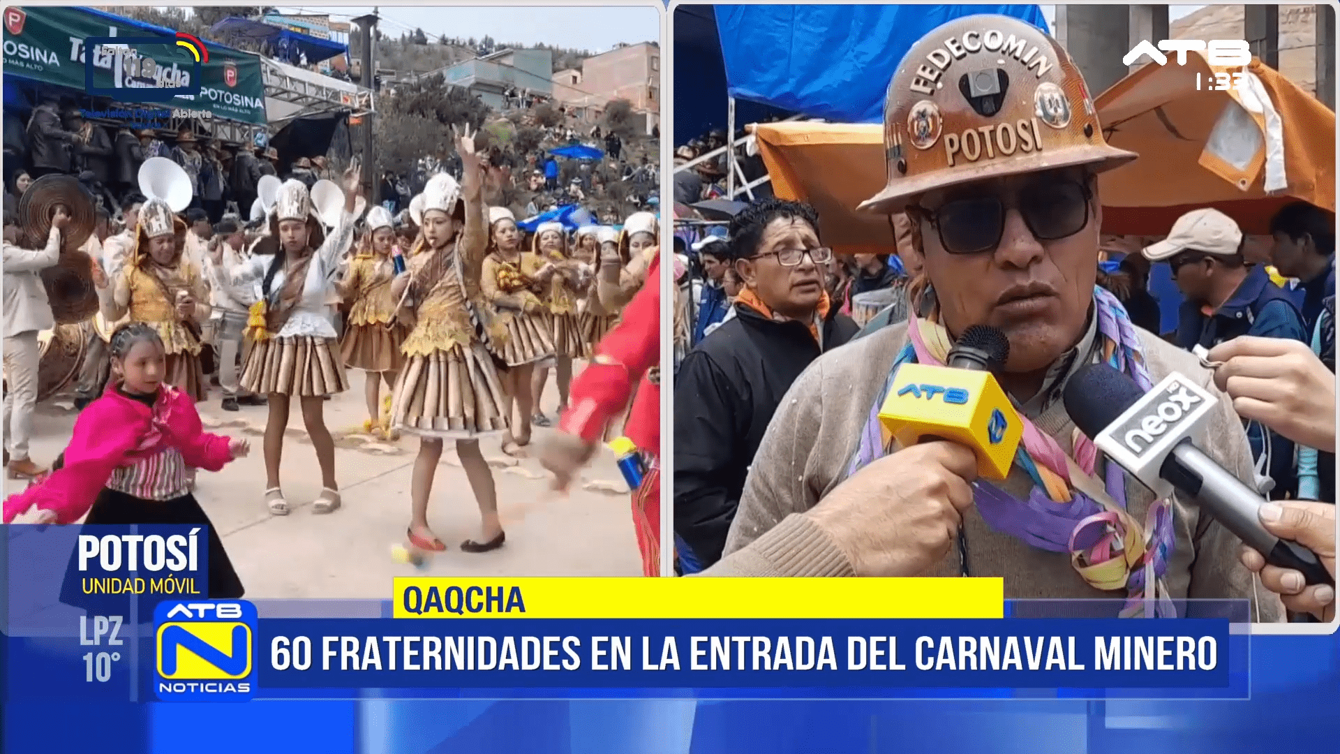 Potosí, 31 de ene 2026 (ATB Digital).- Un total de 60 fraternidades participaron de la entrada del Carnaval Minero en la ciudad de Potosí. La festividad es una expresión cultural en la que los asistentes manifiestan su gratitud. El presidente de la Federación de Cooperativas Mineras (Fedecomin), Óscar Chavarría, solicitó evaluar la declaratoria de la actividad como patrimonio.