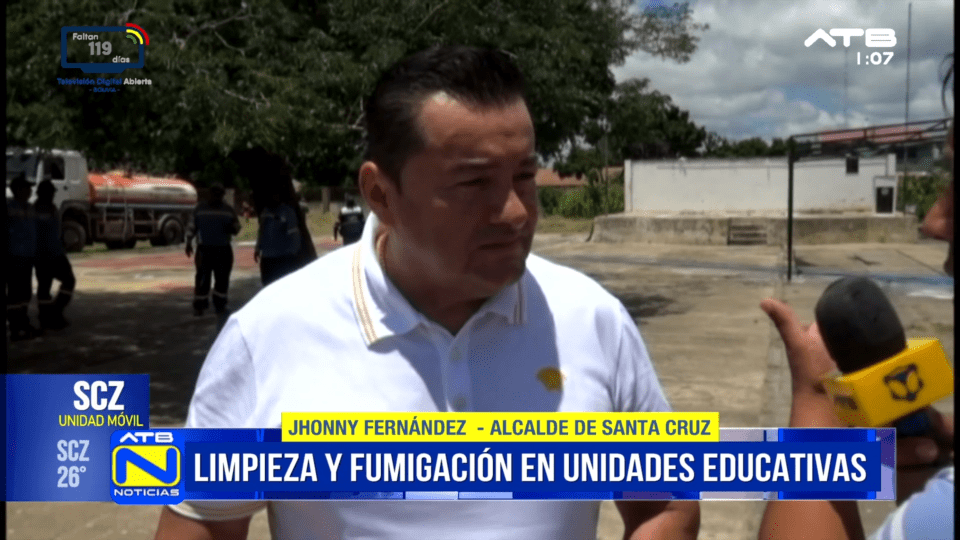Santa Cruz, 31 de ene 2026 (ATB Digital).- El alcalde de Santa Cruz, Jhonny Fernández, informó que más del 90% de las unidades educativas del municipio se encuentran en condiciones para el inicio de clases. Asimismo, indicó que los trabajos de fumigación y refacción continuarán durante el año y aseguró que el desayuno escolar está garantizado desde este 2 de febrero.
