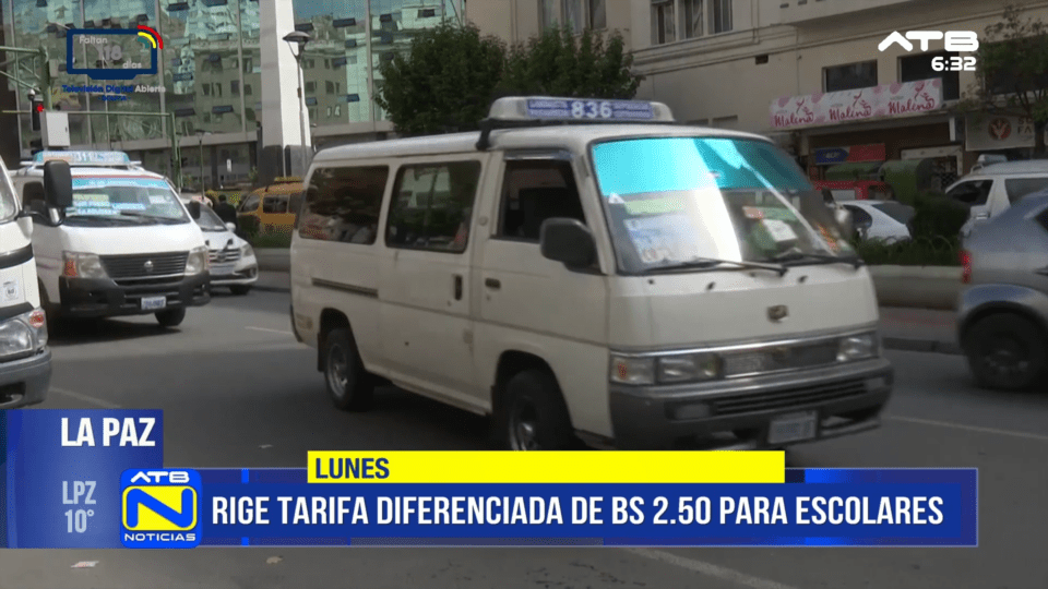 La Paz, 01 de feb 2026 (ATB Digital).- Desde este lunes 2 de febrero entrará en vigencia la tarifa diferenciada acordada entre la Alcaldía de La Paz y el sector del transporte. La tarifa será de Bs 2,50 para escolares en minibuses y Bs 1,80 en micros, en el horario de 07:00 a 20:00, de lunes a viernes.