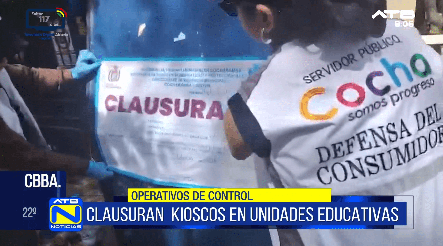 Cochabamba, 02 de feb 2026 (ATB Digital).- En la ciudad de Cochabamba se realizaron operativos de control en inmediaciones de unidades educativas, donde personal municipal clausuró un puesto de venta por incumplir normas de salubridad. Durante la intervención se evidenció la comercialización de productos vencidos destinados a estudiantes. Las autoridades anunciaron que los controles continuarán para resguardar la salud de la población escolar.