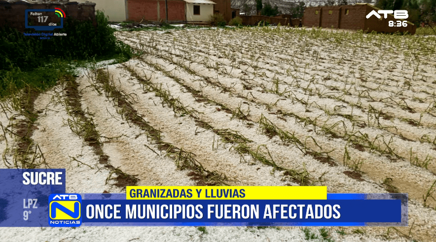 Chuquisaca, 02 de feb 2026 (ATB Digital).- En el departamento de Chuquisaca se reportan once municipios afectados por las intensas lluvias registradas en los últimos días. Productores de las zonas impactadas señalaron que la producción agrícola sufrió graves daños debido a las inclemencias del tiempo. Ante esta situación, solicitaron apoyo y asistencia de las autoridades departamentales y del Gobierno nacional.