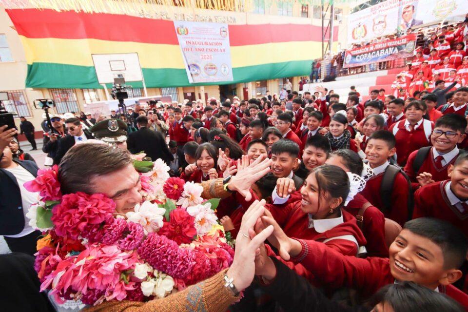 Rodrigo Paz inaugura el año escolar 2026 en Copacabana