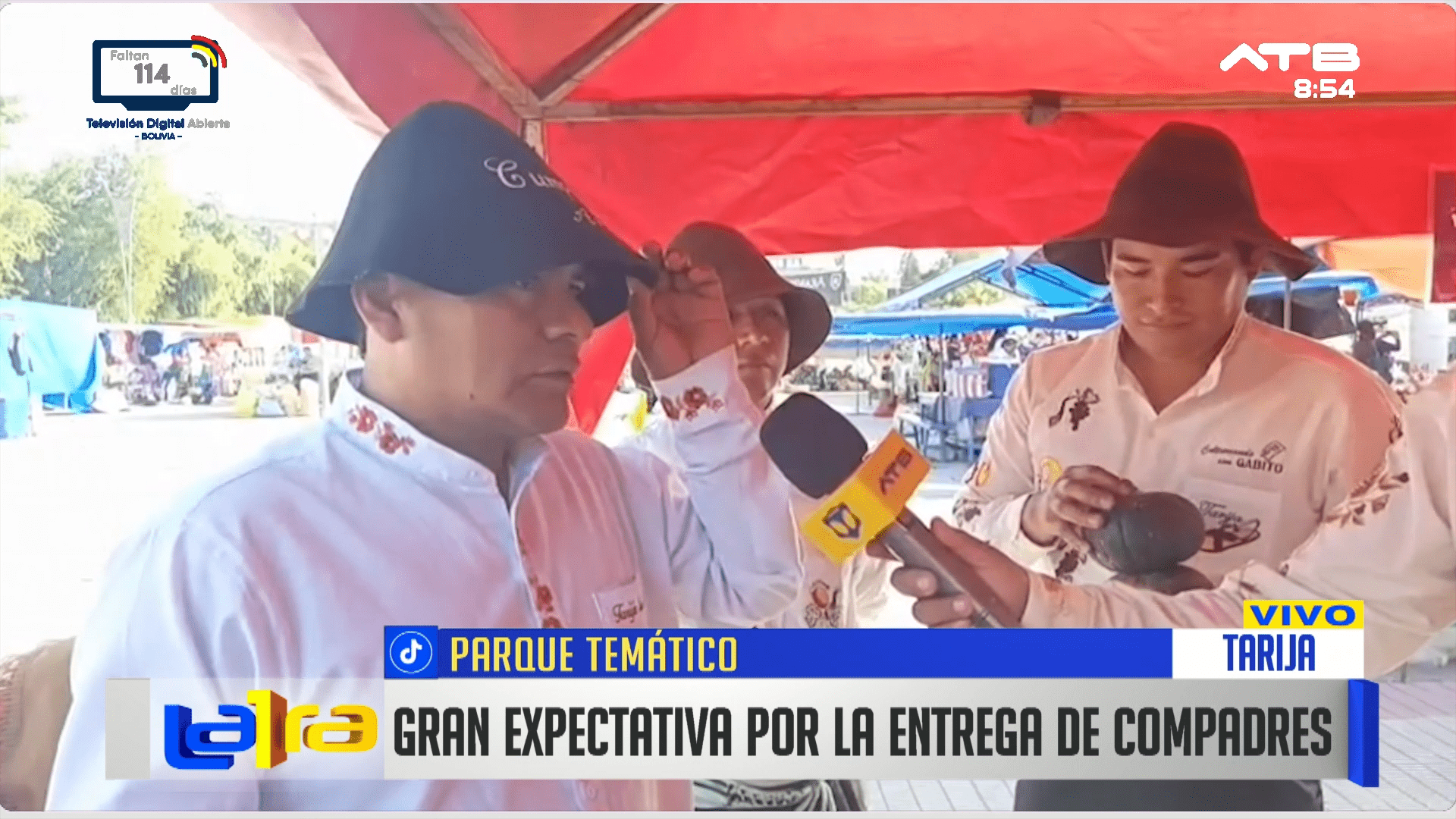 La Paz, 5 de feb 2026 (ATB Digital).- Desde el Parque Temático de Tarija se vive un ambiente de gran expectativa por la segunda entrada de Compadres, donde numerosos compadres se preparan para participar de esta tradicional y alegre celebración.