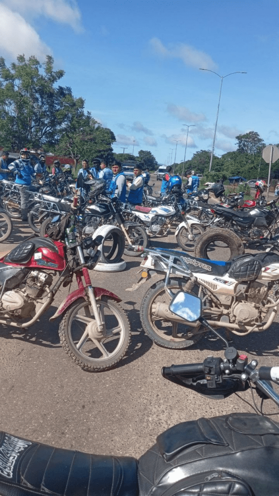 Mototaxistas bloquean la carretera que une a la capital cruceña con el Norte Integrado
