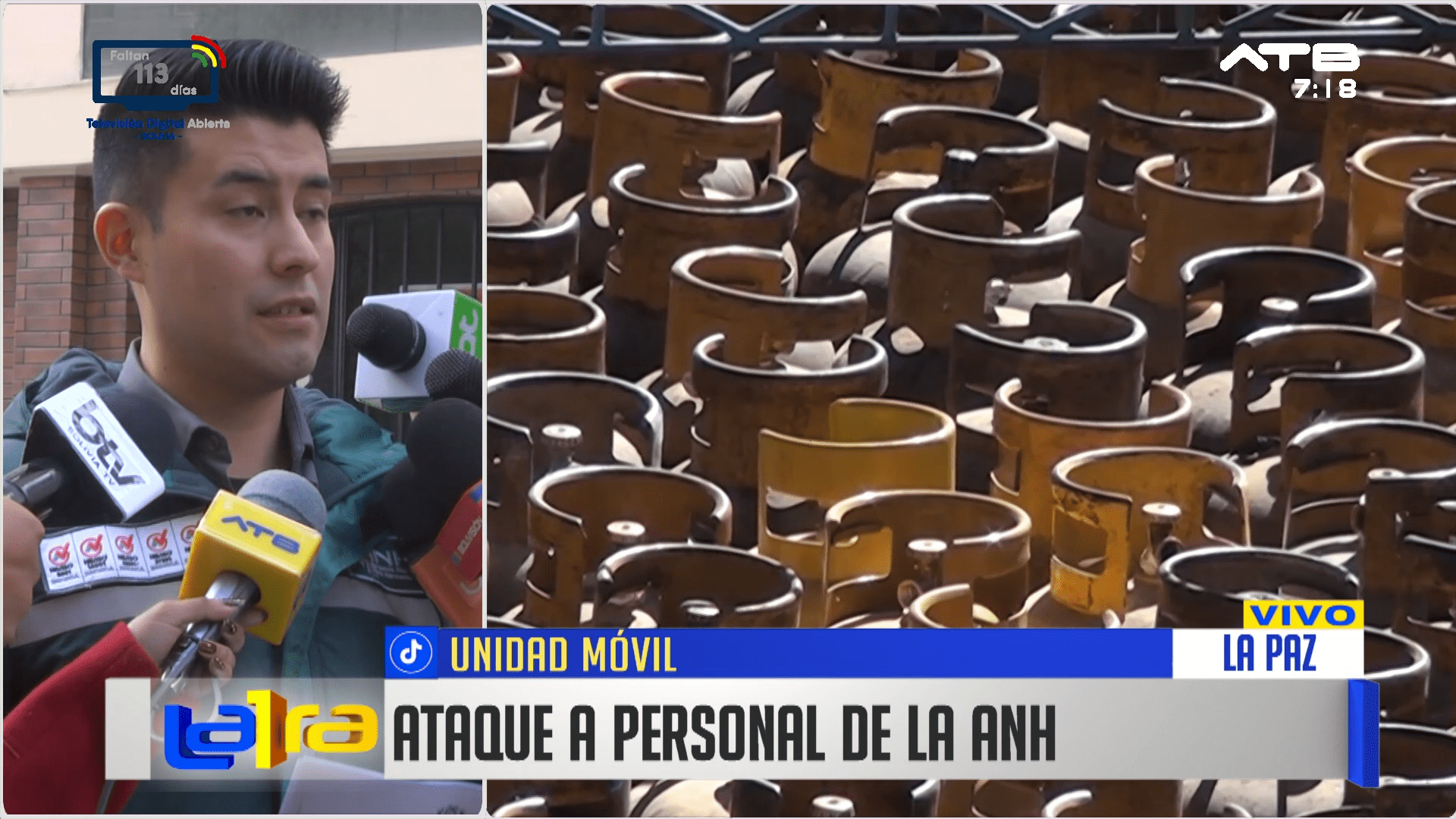 La Paz, 6 de feb 2026 (ATB Digital).- Personal de la Agencia Nacional de Hidrocarburos (ANH), policías y apoyo sufrieron agresiones durante la incautación de garrafas en El Alto. Se presume que el combustible iba a ser llevado de contrabando hacia Perú, generando enfrentamientos con los involucrados.