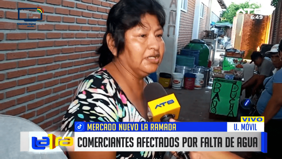 Santa Cruz, 6 de feb 2026 (ATB Digital).- Comerciantes del Mercado Nuevo en la zona de La Armada denuncian que llevan 10 días sin suministro de agua. La Alcaldía se comprometió a pagar la factura pendiente para restablecer el servicio, mientras los afectados advierten que la falta de agua afecta sus actividades diarias y las ventas.
