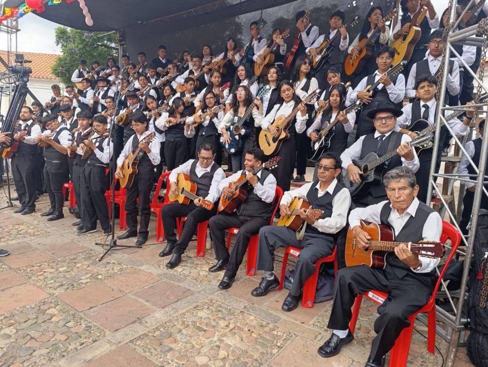 Chuquisaca, 7 de feb 2026 (ATB Digital).- Decenas de músicos componen este sábado la Estudiantina más grande de Bolivia en la plazuela de La Recoleta, en la ciudad de Sucre.
