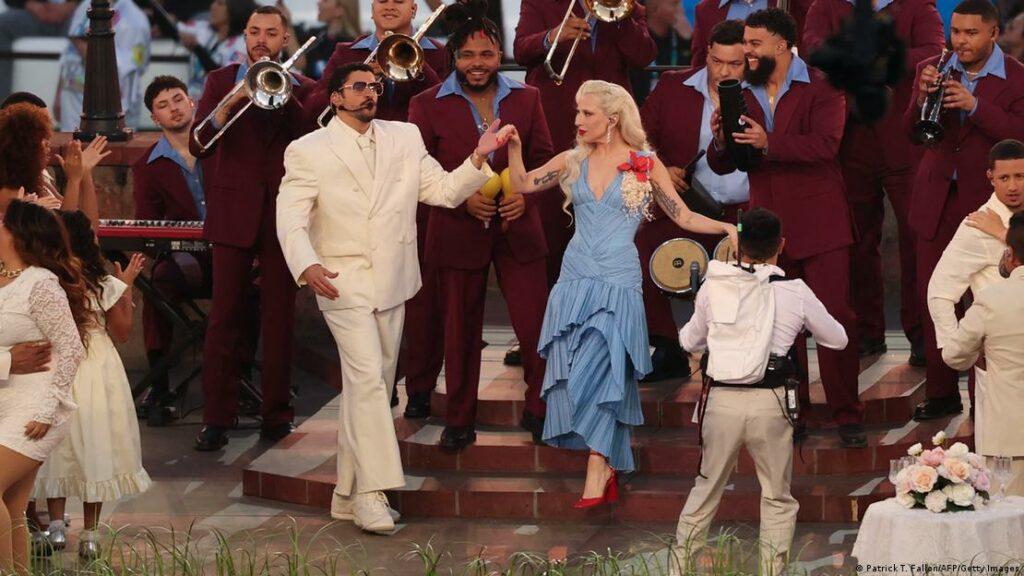 Mientras, estrellas como Cardi B, Jessica Alba, Young Miko y Pedro Pascal bailaban en la casita que se ha vuelto el escenario de su gira de “DeBÍ TiRAR MáS FOToS”. Jíbaros, vendedores, bailarines, campesinos, trabajadores y familias lo acompañaron durante todo el show, visto por más de 120 millones de espectadores.