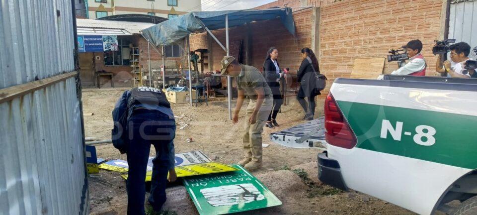 Cochabamba, 10 de feb 2026 (ATB Digital).- El grupo de inteligencia de la Policía (CEIP) aprehendió a dos funcionarios de la Secretaría de Infraestructuras y Obras Públicas de la Alcaldía de Cercado, acusados de sustraer letreros de señalización y nombres de calles. Un tercer implicado se encuentra prófugo.