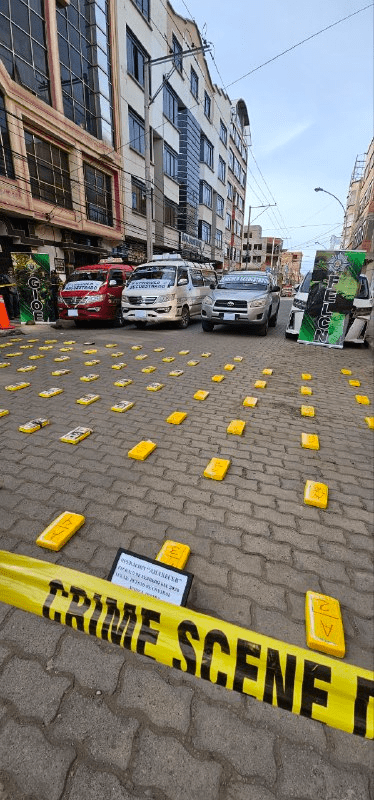 La Paz, 10 de feb 2026 (ATB Digital) .- En dos operativos realizados entre el 5 y el 9 de febrero, la Fuerza Especial de Lucha Contra el Narcotráfico (FELCN) en La Paz decomisó 96 paquetes de clorhidrato de cocaína, que en total suman cerca de 100 kilos. Además, aprehendieron a cinco personas e incautaron tres vehículos.