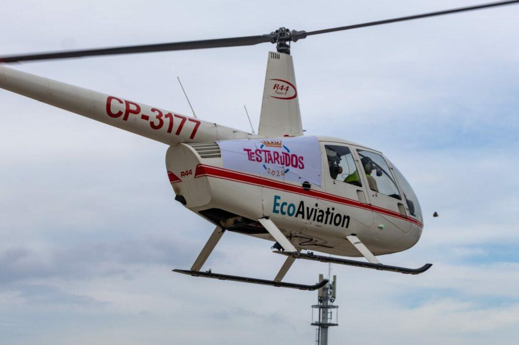 Santa Cruz, 11 de feb 2026 (ATB Digital).- Camila Ribera, ingresa en la historia del Carnaval Cruceño, con espectacularidad, y es que, si primero sorprendió en su proclamación apareciendo en una grúa de canastillo; para la previa de su coronación encandiló al llegar de forma triunfal en un helicóptero.