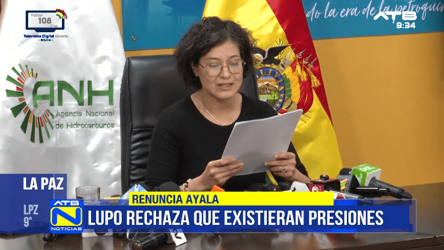 La Paz, 11 de feb 2026 (ATB Digital).- El ministro de la Presidencia, José Luis Lupo, negó que existieran presuntas presiones para la renuncia de la directora de la Agencia Nacional de Hidrocarburos (ANH), Margot Ayala, y afirmó que corresponde esperar los informes oficiales de YPFB.