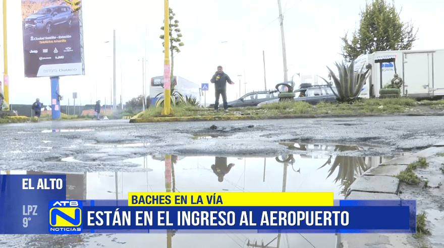 La Paz, 12 de feb 2026 (ATB Digital).- El ingreso al Aeropuerto Internacional de El Alto presenta una gran cantidad de baches, situación que preocupa a vecinos de la zona, quienes consideran que se trata de una mala imagen para quienes llegan desde el exterior.