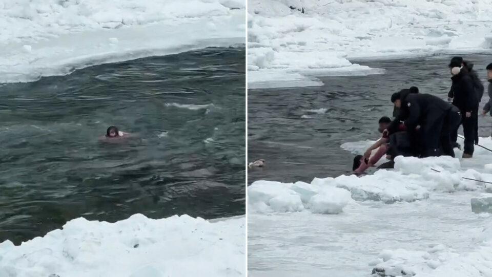 Mundo, 13 de feb 2026 (ATB Digital).- En la zona escénica de Kanas, en Xinjiang (China), una madre y su hija cayeron a un río helado después de traspasar una línea de advertencia para hacerse fotos, y fueron arrastradas por la fuerte corriente. Un video muestra cómo varios visitantes se quitan parte de la ropa para tendérsela a la niña y ponerla a salvo en la orilla. Los mismos rescatistas lograron sacar también a la madre, que había quedado atrapada entre los bloques de hielo.