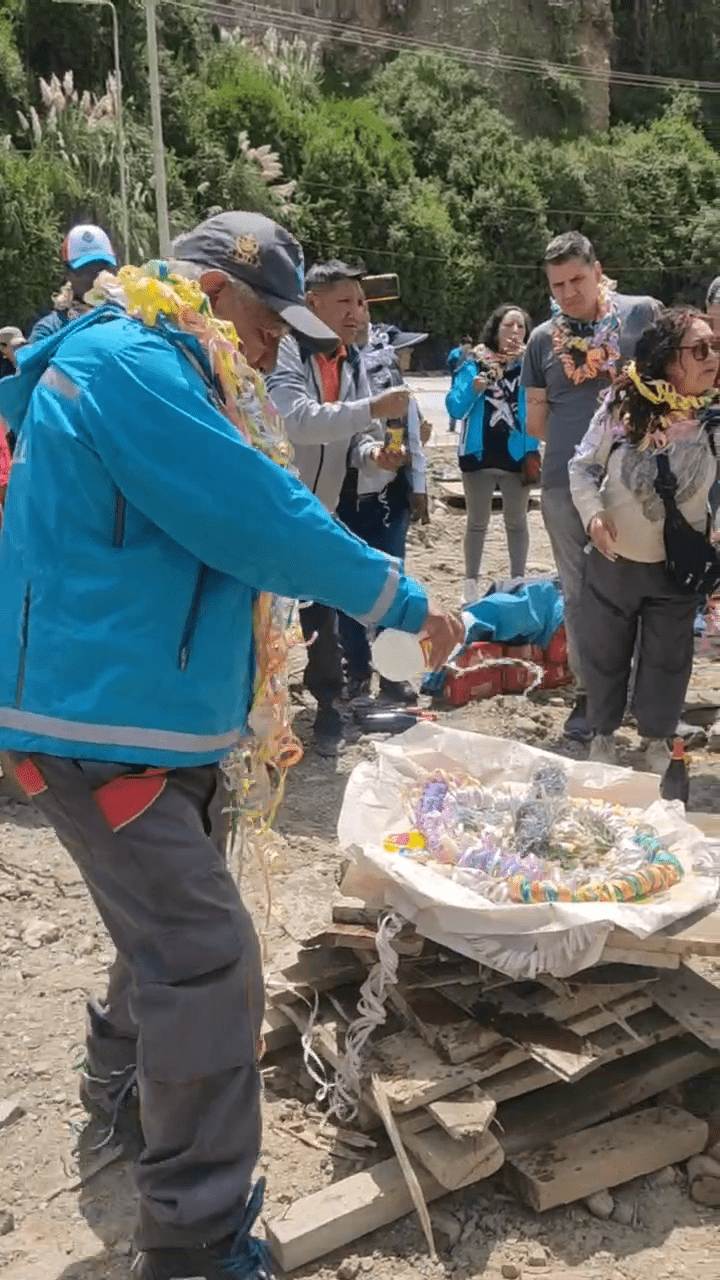 La autoridad edil participó en la ch’alla de ambas obras en la gruta de Lourdes. Posteriormente, realizó una inspección a las dos vías para verificar el estado de los trabajos y los detalles finales antes de su habilitación.