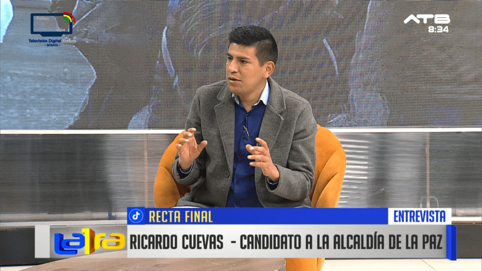 La Paz, 18 de feb 2026 (ATB Digital).- Ricardo Cuevas, candidato a la Alcaldía de La Paz, dio a conocer sus principales propuestas de gestión, enfocadas en mejorar la administración municipal y atender las necesidades prioritarias de la población. El postulante señaló que su plan busca fortalecer los servicios básicos, el desarrollo urbano y la participación ciudadana, de cara a las próximas elecciones municipales.