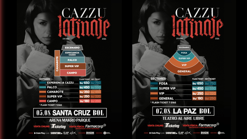 Las entradas estarán disponibles de manera online a través de la plataforma Ticketeg y también en puntos de venta físicos en sucursales de Farmacorp a nivel nacional, además del Shopping Fidalga, ubicado en la avenida Banzer, en Santa Cruz.