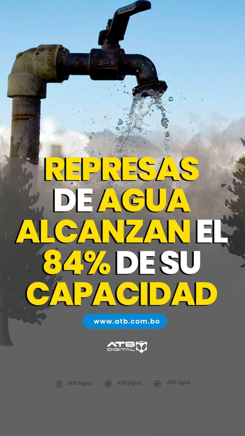 La Paz, 20 de feb 2026 (ATB Digital).- La Empresa Pública Social de Agua y Saneamiento (EPSAS) informó que las represas que abastecen a La Paz y El Alto se encuentran al 84% de su capacidad total, con 52 millones de metros cúbicos de agua almacenados de un volumen aproximado de 62 millones.