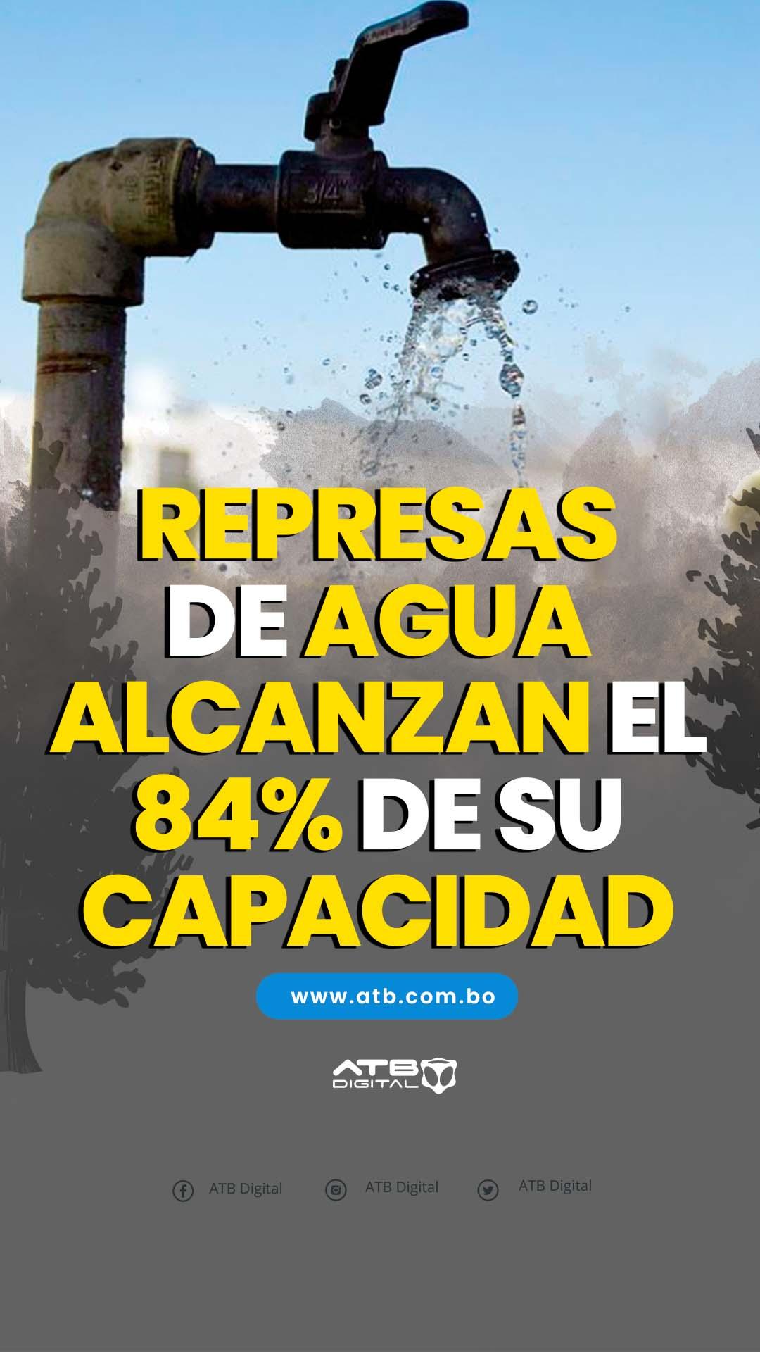Represas de agua alcanzan el 84% de su capacidad