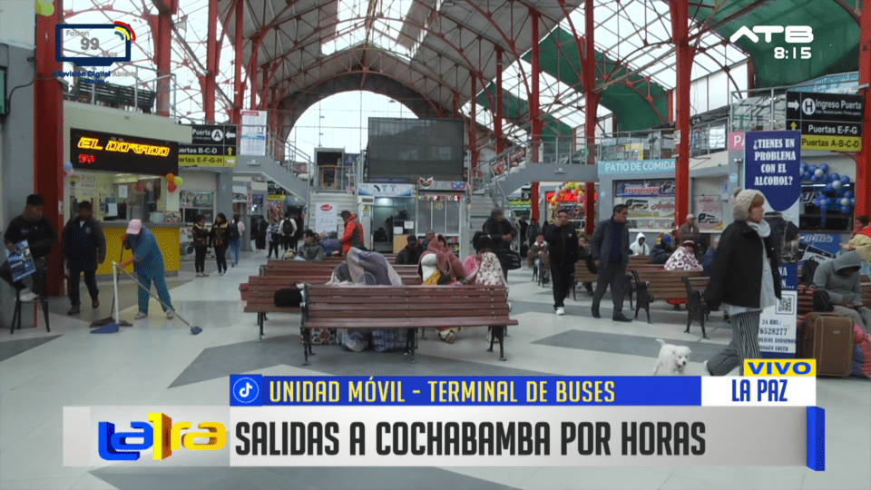 La Paz, 20 de feb 2026 (ATB Digital).- Desde la Terminal de Buses de La Paz se informó que las salidas hacia Cochabamba se habilitarán de manera restringida y por horarios, debido a limitaciones en la carretera. Los viajes serán autorizados de forma escalonada, según disposición de tránsito, para garantizar la seguridad en la ruta.