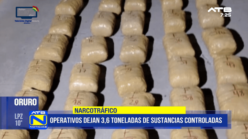 Oruro, 22 de feb 2026 (ATB Digital).- La Fuerza Especial de Lucha Contra el Narcotráfico (FELCN) ejecutó operativos en el departamento de Oruro que derivaron en el secuestro de 3,6 toneladas de sustancias controladas. El director departamental, Christian Betancourt, destacó los resultados obtenidos en la lucha contra el narcotráfico.
