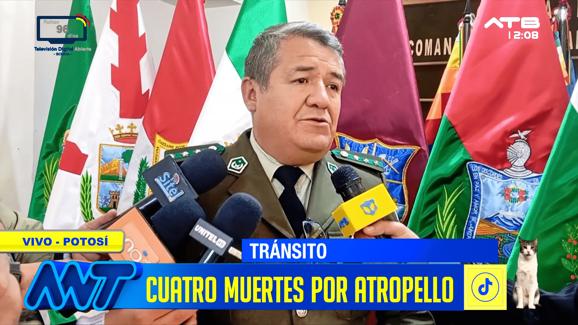Potosí, 23 de feb 2026 (ATB Digital).- Cuatro personas resultaron atropelladas en la ciudad de Potosí, en un hecho que ya es objeto de investigación por parte de las autoridades competentes. El incidente movilizó a personal policial y de emergencia, que acudió al lugar para auxiliar a los afectados.