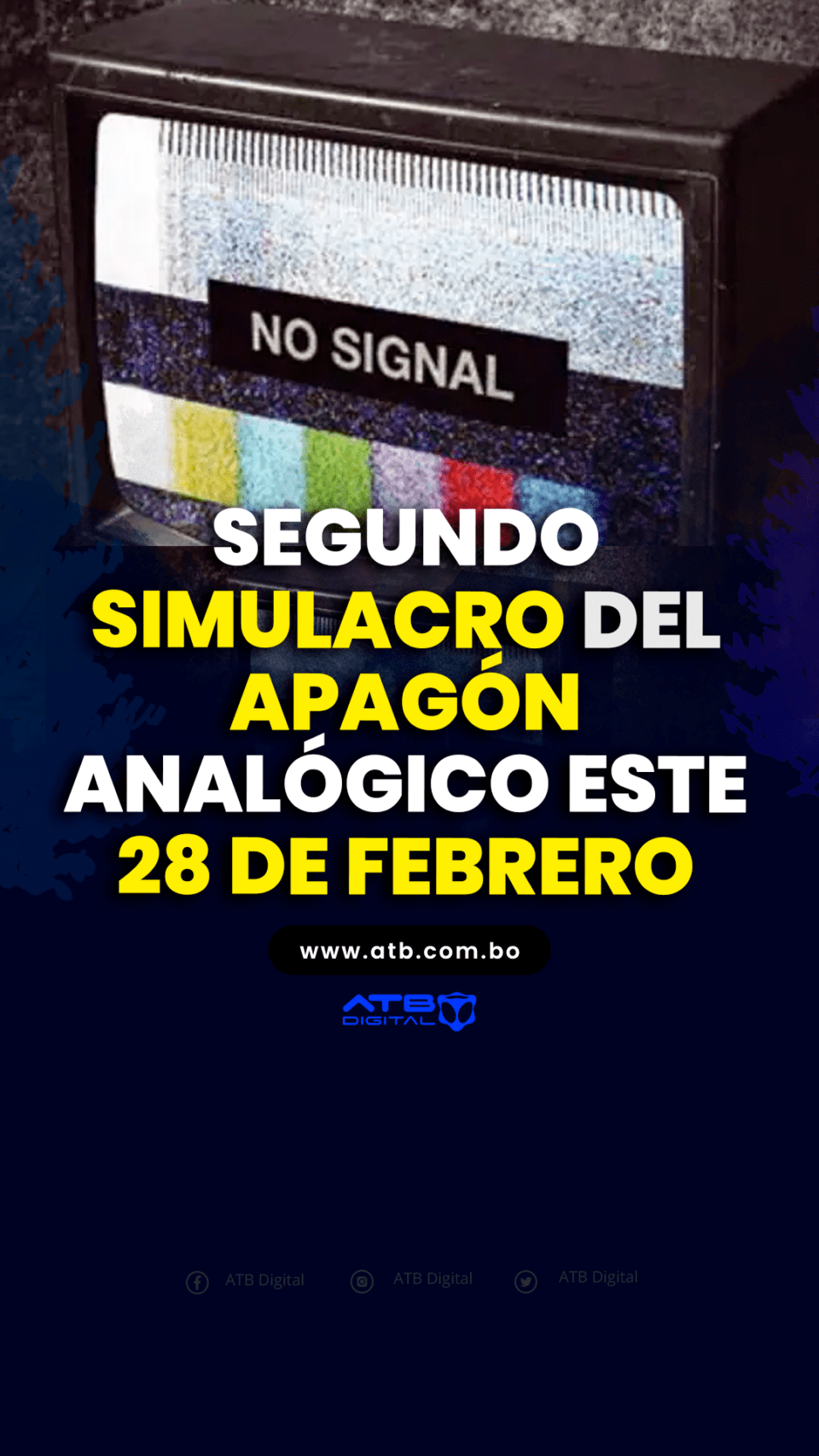El segundo simulacro del apagón analógico se desarrollará este 28 de febrero en los municipios de Cochabamba, Vinto, La Paz, Viacha, Laja, Santa Cruz de la Sierra, Warnes y El Torno. Durante las cuatro horas que durará la prueba podrían presentarse interferencias o interrupciones momentáneas en la transmisión televisiva.