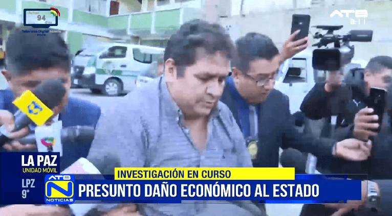 La Paz, 25 de feb 2026 (ATB Digital).- Desde instalaciones de la Fuerza Especial de Lucha Contra el Crimen (FELCC) se informó sobre la aprehensión del exgerente de la Empresa Boliviana de Producción Agropecuaria (B-Agro), William Villarpando, investigado por presuntos actos administrativos irregulares y posible daño económico al Estado.