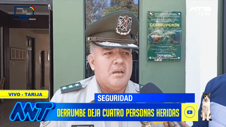 Tarija, 25 de feb 2026 (ATB Digital).- Un derrumbe registrado en la vía que conduce hacia Tarija afectó a cuatro personas, quienes resultaron heridas tras el incidente. Equipos de emergencia acudieron al lugar para brindar asistencia y realizar las labores correspondientes.