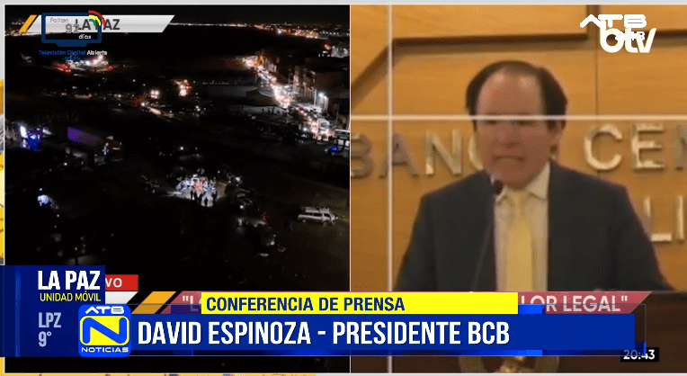 La Paz, 27 de feb 2026 (ATB Digital).- En conferencia de prensa, el presidente del Banco Central de Bolivia (BCB), David Espinoza, informó que los billetes que se encontraban al interior de la aeronave siniestrada en la ciudad de El Alto no tienen valor legal.