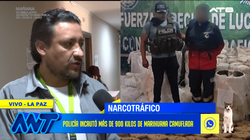 La Paz, 27 de feb 2026 (ATB Digital).- La Policía Boliviana realizó un operativo que permitió la incautación de más de 900 kilos de marihuana que se encontraban camuflados. En el caso se registró la aprehensión de una persona, mientras las autoridades calificaron la investigación como un proceso complejo debido a la modalidad utilizada para ocultar la sustancia.