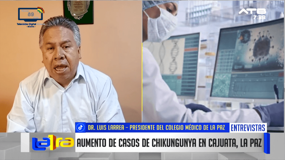La Paz, 2 de mar 2026 (ATB Digital).- El presidente del Colegio Médico de La Paz, Luis Larrea, advirtió sobre el incremento de casos de chikunguña en el municipio de Cajuata. La autoridad médica expresó preocupación por la propagación de la enfermedad y llamó a reforzar las medidas de prevención.