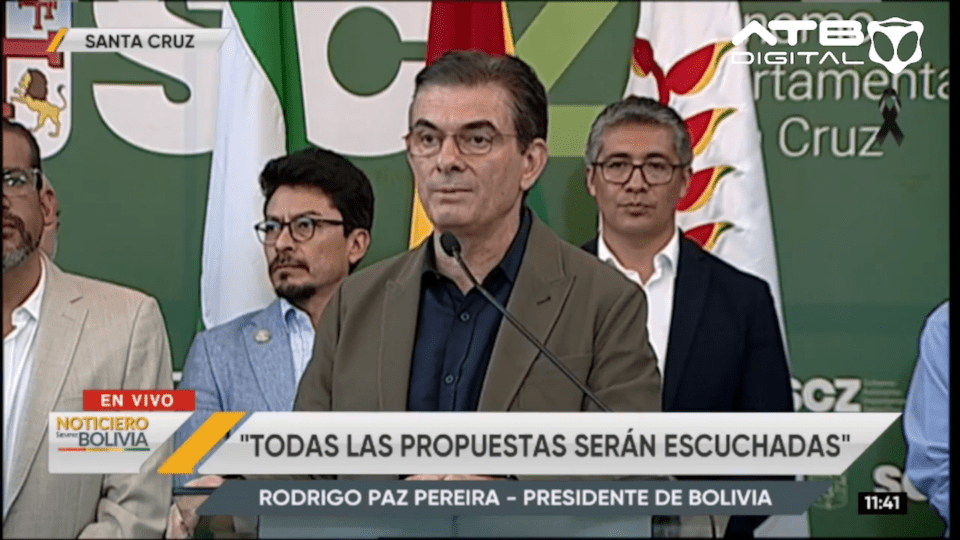 Santa Cruz, 2 de mar 2026 (ATB Digital).- El presidente Rodrigo Paz Pereira anunció que este lunes se instalará un Gabinete ministerial en la ciudad de Santa Cruz de la Sierra para dar inicio al proceso de redistribución de recursos bajo el esquema 50-50.