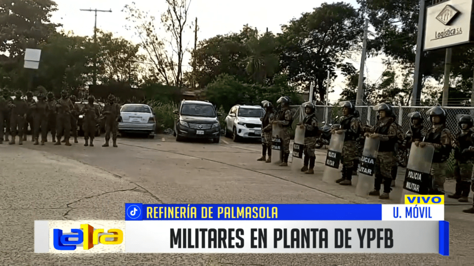 Santa Cruz, 2 de mar 2026 (ATB Digital).- Efectivos militares se encuentran en la planta de YPFB en Santa Cruz de la Sierra, específicamente en la refinería de Refinería de Palmasola, donde decenas de camiones cisterna permanecen en fila sin poder ingresar a descargar carburante. Según los transportistas, ya suman 37 días de espera.
