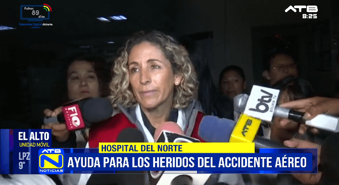La Paz, 02 de mar 2026 (ATB Digital).- La primera dama del Estado, María Elena Urquidi, realizó una visita al Hospital del Norte para brindar apoyo a las personas heridas tras el accidente aéreo ocurrido el 27 de febrero en El Alto.