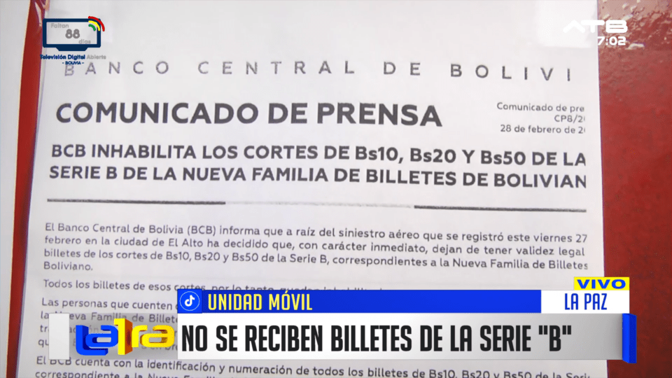 La Paz, 3 de mar 2026 (ATB Digital).- En distintas estaciones de servicio del país no estarían recibiendo cortes de 10, 20 y 50 bolivianos de la serie B, generando reclamos entre conductores que intentan pagar combustible con esos billetes.