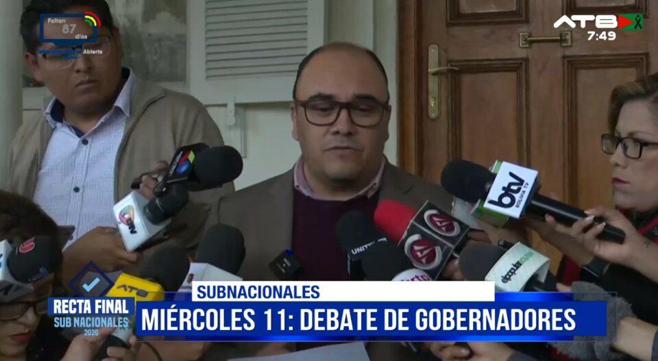 La Paz, 04 de mar 2026 (ATB Digital).- El presidente del Tribunal Supremo Electoral, Gustavo Ávila, confirmó la realización de los debates de candidatos a gobernadores el 11 de marzo en las ciudades capitales. Asimismo, el debate para alcaldías se efectuará el 15 de marzo; en el caso de El Alto, la cita será el 14 de marzo. La decisión se tomó tras evaluar las fechas y condiciones técnicas para garantizar la participación.