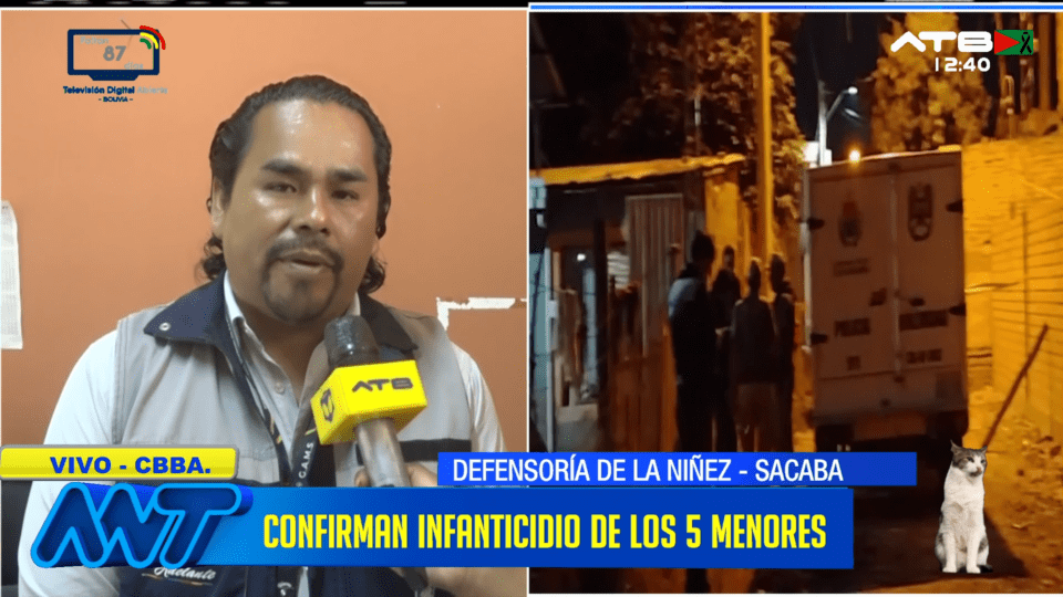 Cochabamba, 4 de mar 2026 (ATB Digital).- La Defensoría de la Niñez y Adolescencia actualizó la información relacionada con el caso de múltiple infanticidio ocurrido en el municipio de Sacaba. La institución señaló que continúa realizando el seguimiento correspondiente en coordinación con otras instancias.