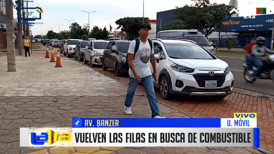 Santa Cruz, 4 de mar 2026 (ATB Digital).- En la zona norte de Santa Cruz de la Sierra (Bolivia) se reportaron largas filas de vehículos en busca de combustible. Conductores indicaron que aguardaron desde la noche anterior con la expectativa de poder cargar carburante, en medio de la demanda registrada en diferentes surtidores.