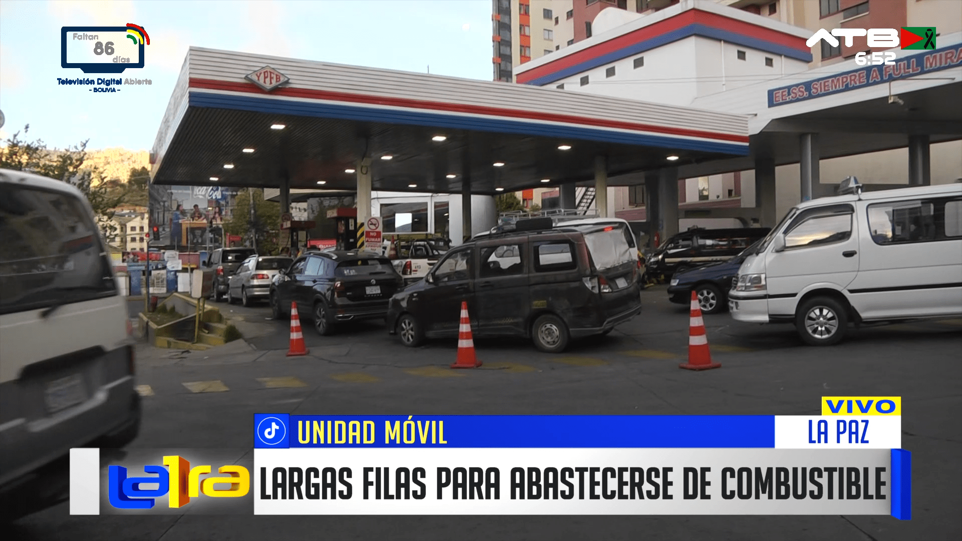 La Paz, 5 de mar 2026 (ATB Digital).- En la ciudad de La Paz se observaron filas de vehículos en estaciones de servicio para el abastecimiento de combustible. Si bien las aglomeraciones no son extensas, los conductores señalaron demoras en la atención.